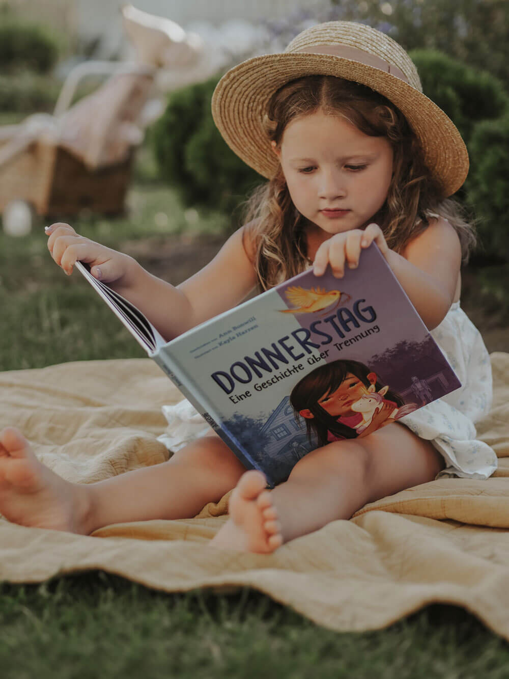 Die schlechte Nachricht kam an einem Donnerstag: Ihre Eltern würden sich scheiden lassen. Und so wurde aus dem Lieblingstag der schlimmste Wochentag überhaupt. Denn alles lief auf einmal anders. Zum Glück steht dem kleinen Mädchen in dieser schweren Zeit ein guter Freund zur Seite. Das kuschelige Einhorn kann aufmuntern, Trost spenden oder einfach nur da sein. Bis irgendwann Donnerstag wieder ein ganz normaler Tag in der Woche sein kann.