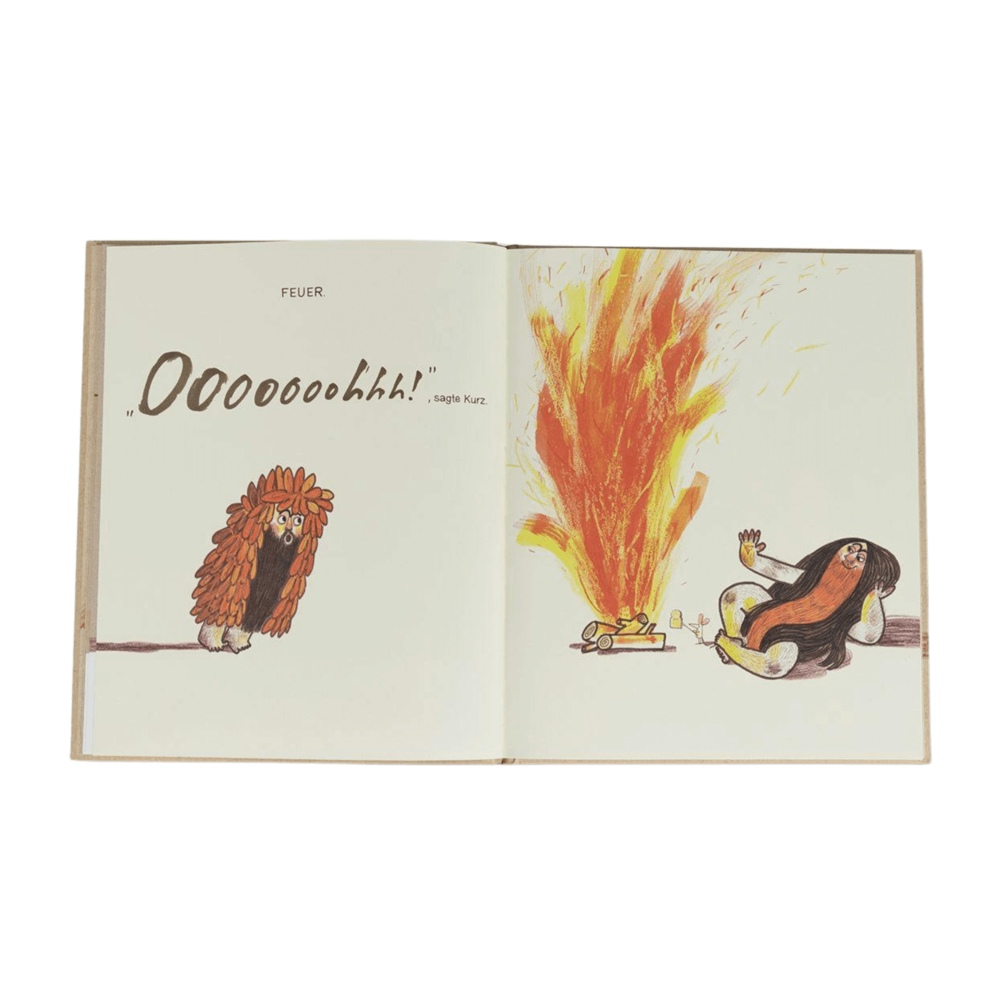 Kurz und Klein sind zwei einfallsreiche Höhlenmenschen: Jeden Tag übertrumpfen sie sich gegenseitig mit neuen, fantastischen Erfindungen. Nachdem Kurz das Feuer erfindet, entwickelt Klein den Stuhl. So liefern sich die beiden einen Technologie-Wettlauf, an dessen Ende beide auf riesigen Stapeln von Wolkenkratzern, Computern und Jumbojets sitzen. Bis die Stapel anfangen zu wackeln – und Kurz und Klein lernen, dass Zusammenarbeit und Teilen vielleicht doch der nachhaltigere Weg sein könnte ...