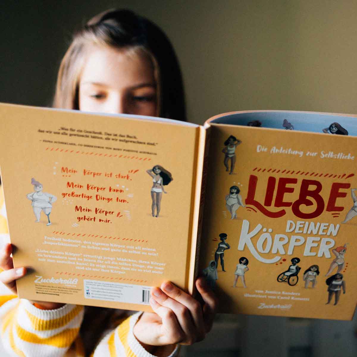 Das Buch gibt eine Einführung in Selbstliebe und Selbstfürsorge und zeigt und feiert ganz diverse Körpertypen. Das hilft Mädchen dabei, ihre Einzigartigkeit wertzuschätzen.