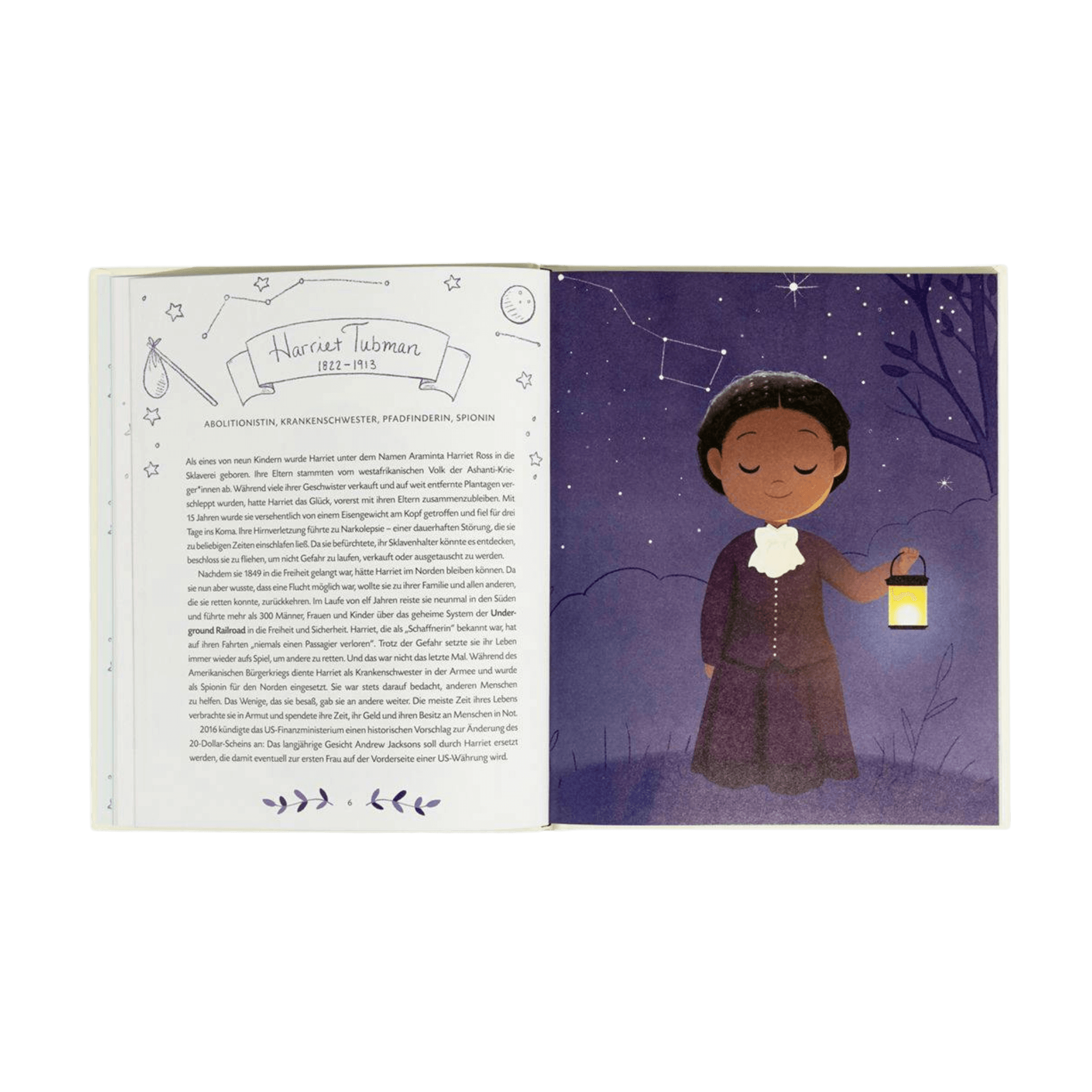 „Little Leaders” stellt 40 Frauen der Schwarzen Geschichte vor, die Außergewöhnliches geleistet haben: Zum Beispiel die NASA-Mathematikerin Katherine Johnson, die Menschen auf den Mond gebracht hat. Oder Bessie Coleman, die erste afroamerikanische Pilotin der Welt. Und die erste Schwarze Astronautin – Dr. Mae Jemison! Mutige Frauen, die die Welt verändert haben und Vorbilder für alle Kinder sein sollten.