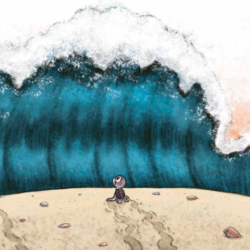 Manchmal steht man vor einer Aufgabe, die sich schrecklich groß und beängstigend anfühlt. So geht es auch Nellie, der kleinen Wasserschildkröte, die nach dem Schlüpfen den weiten Weg zum Meer laufen muss. All ihre Geschwister laufen aufgeregt los – außer Nellie. Denn Nellie hat Angst. Die Wellen sind riesig und das Meer so tief! Nellie versucht sich zu verstecken, aber plötzlich bricht die Nacht herein und Nellie hat keine andere Wahl, als sich der Angst zu stellen. Bis die kleine Schildkröte plötzlich merkt, dass hinter den gruseligen Wellen eine ganz neue, wunderbare Welt nur darauf wartet, entdeckt zu werden.